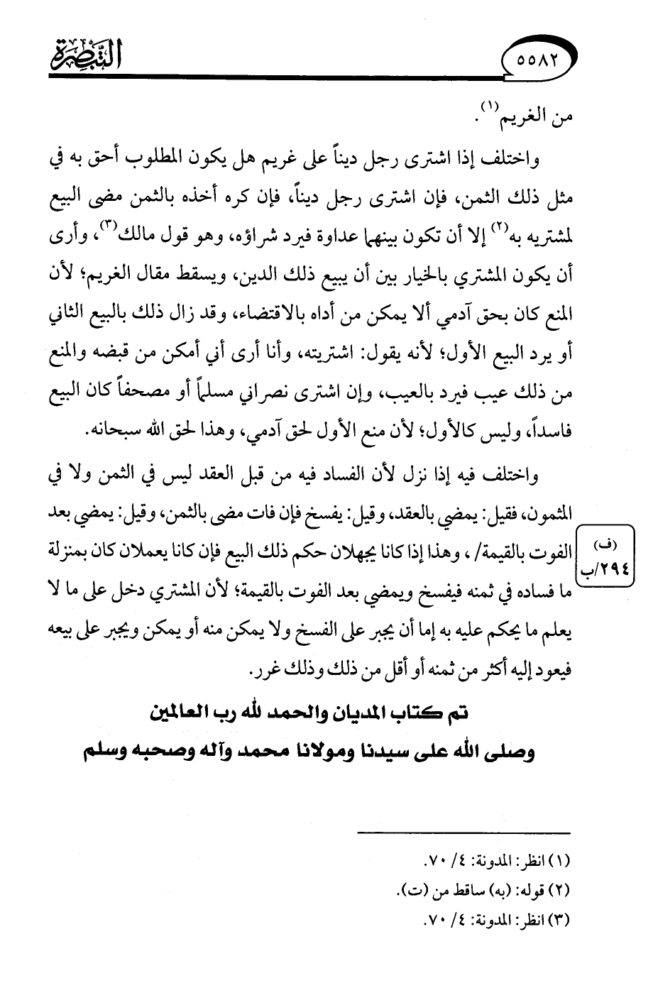 (¬3) انظر: المدونة: 4/ 70.
