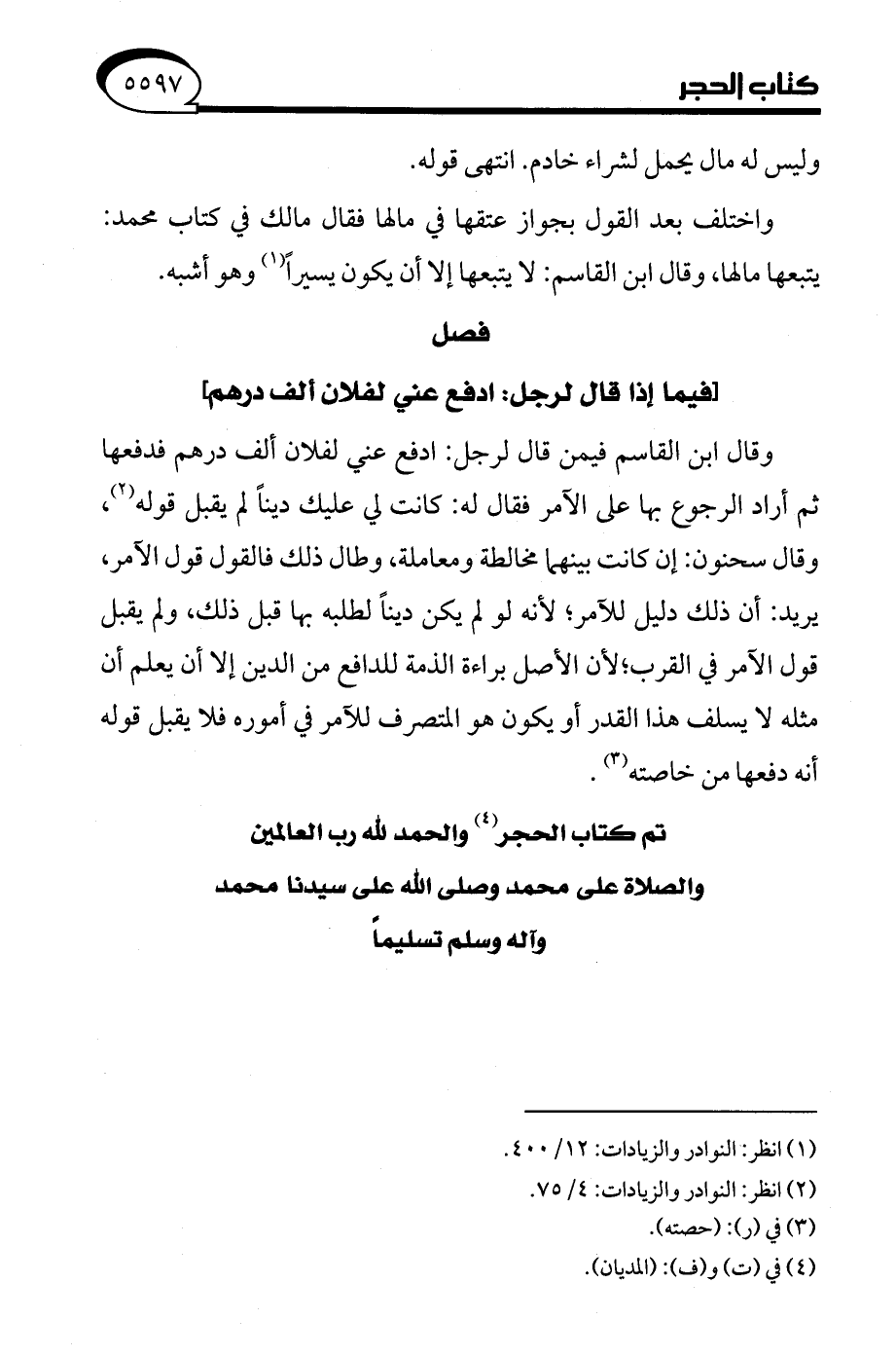 (¬2) انظر: النوادر والزيادات: 4/ 75.