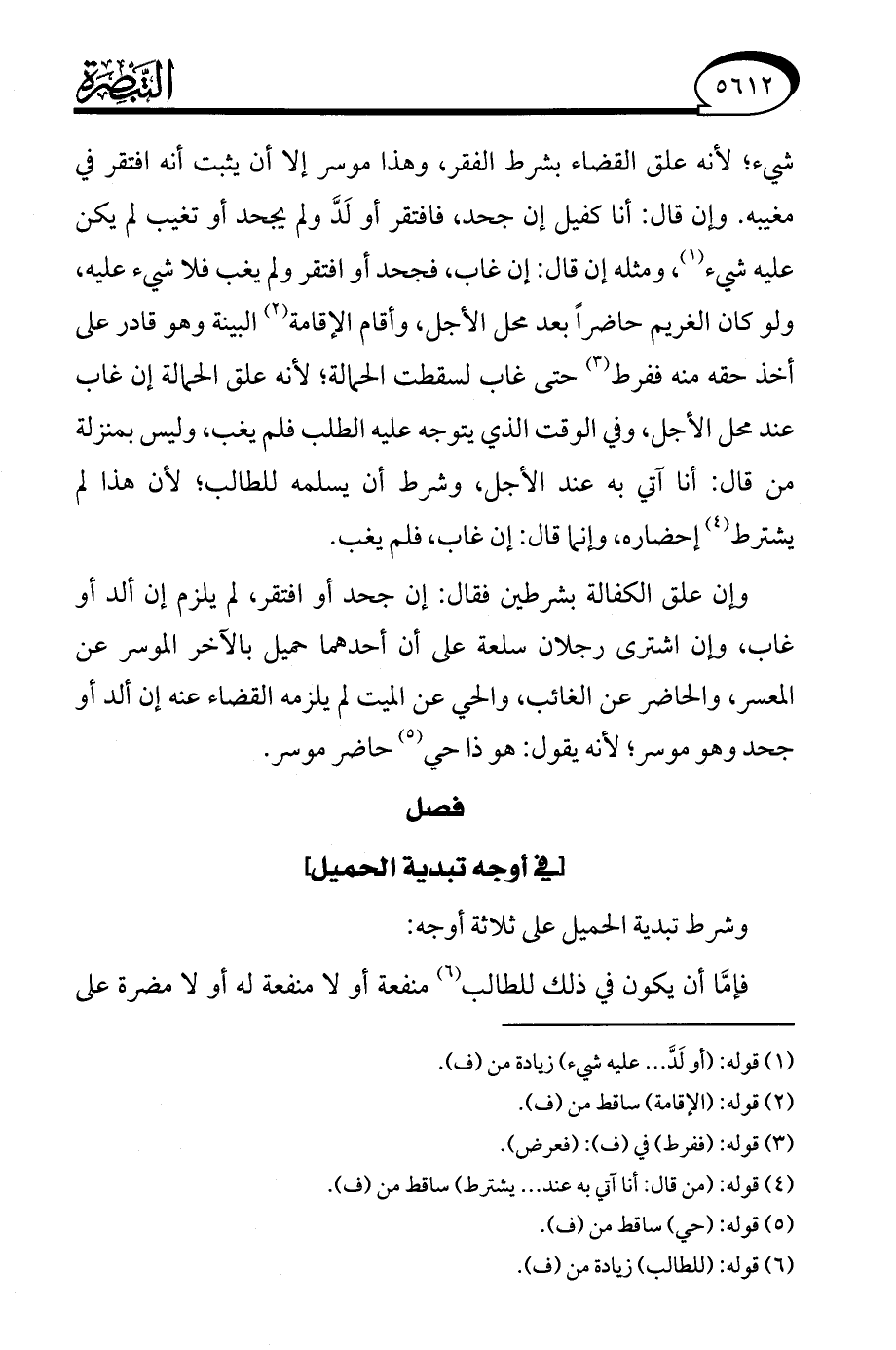 فصل [في أوجه تبدية الحميل]
