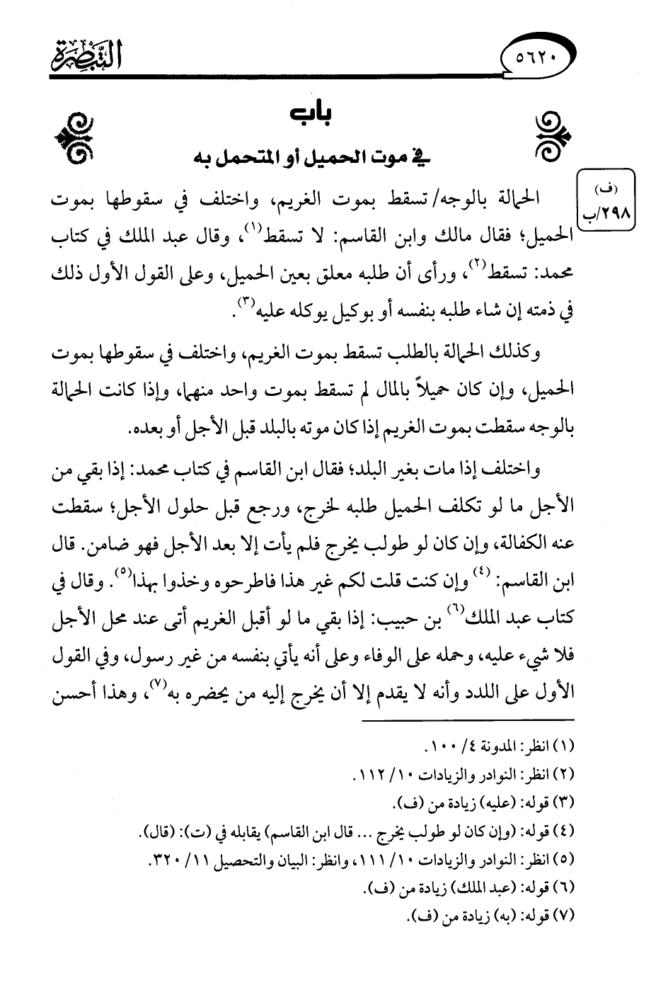 (¬5) انظر: النوادر والزيادات 10/ 111، وانظر: البيان والتحصيل 11/ 320.