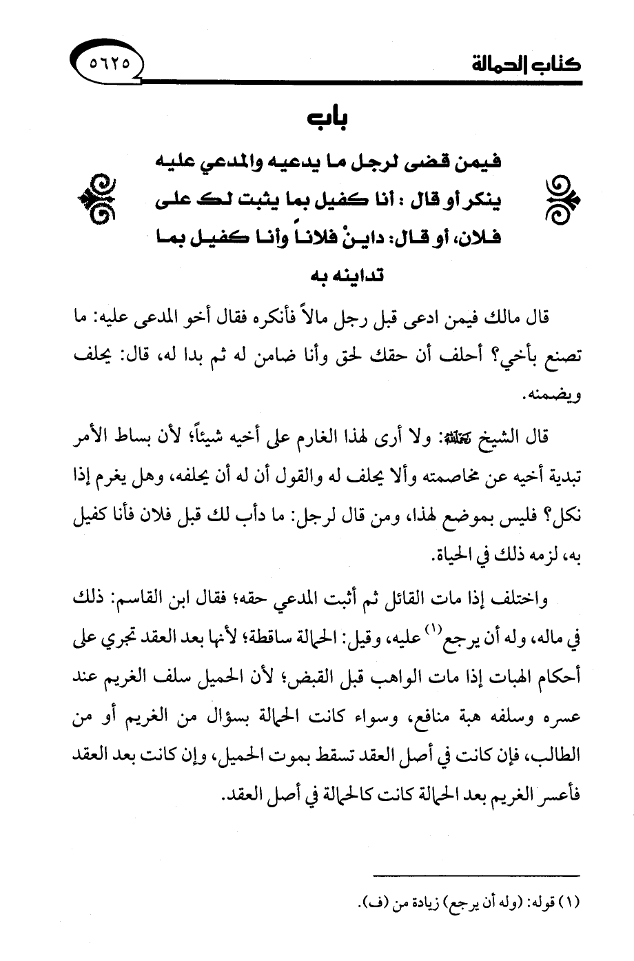 قال الشيخ -رحمه الله-: ولا أرى لهذا الغارم على أخيه شيئًا؛ لأن بساط الأمر تبدية أخيه عن مخاصمته وألا يحلف له والقول أن له أن يحلفه، وهل يغرم إذا نكل؟ فليس بموضع لهذا، ومن قال لرجل: ما دأب لك قبل فلان فأنا كفيل به، لزمه ذلك في الحياة.