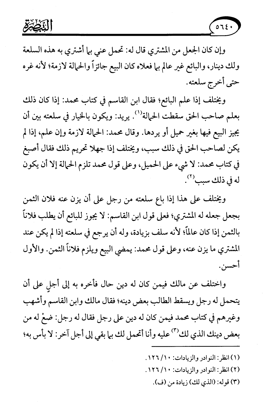 (¬2) انظر: النوادر والزيادات: 10/ 126.