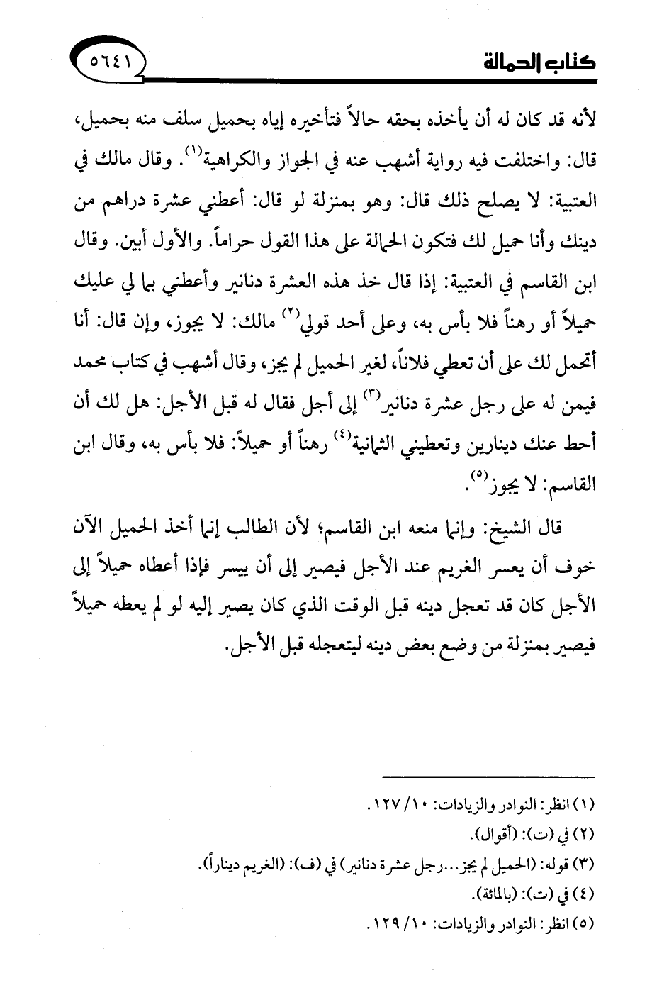 (¬5) انظر: النوادر والزيادات: 10/ 129.