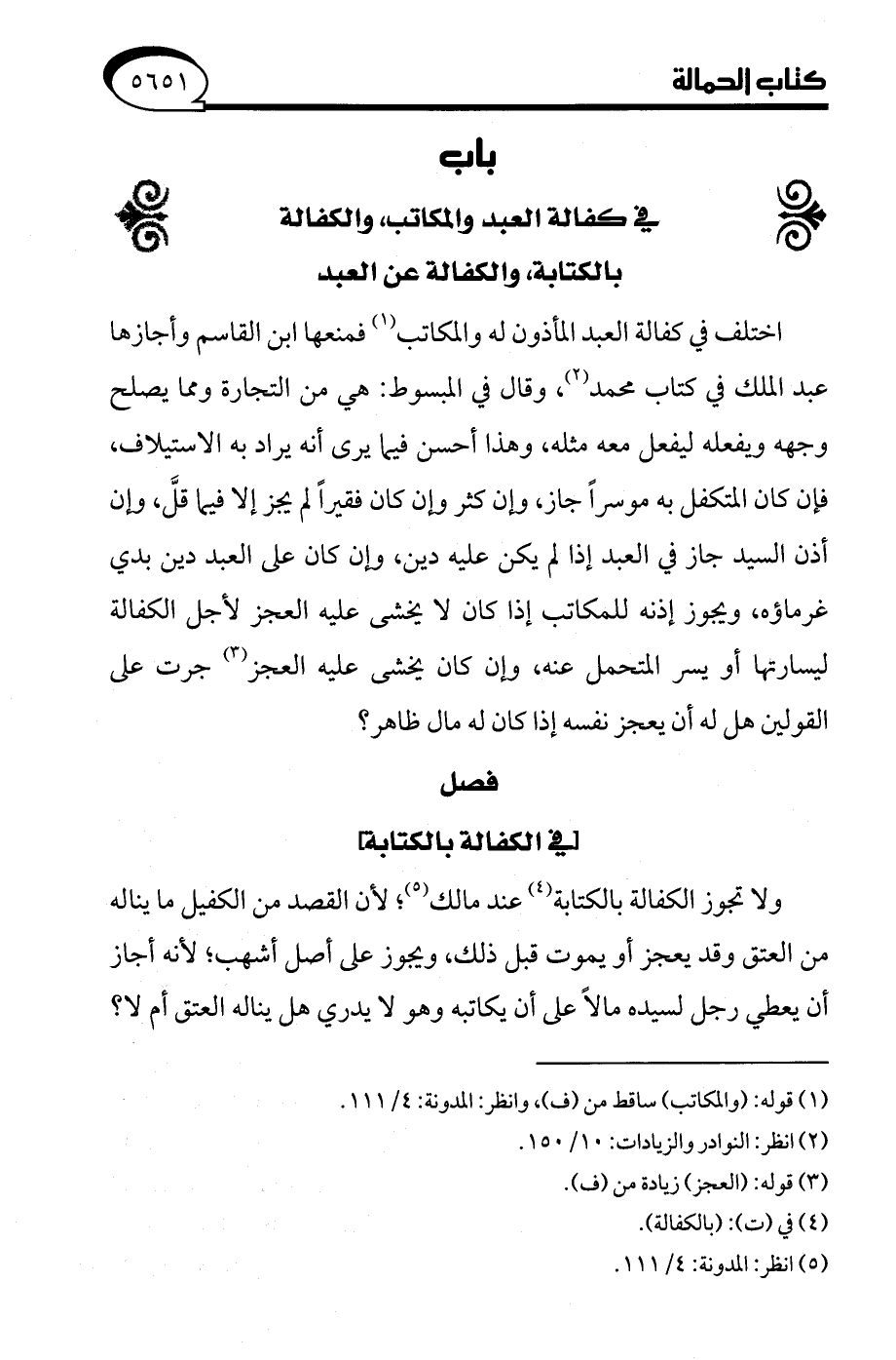 (¬5) انظر: المدونة: 4/ 111.