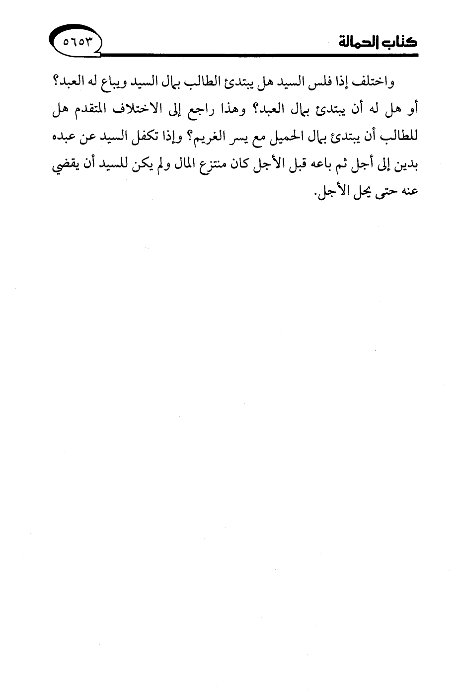 واختلف إذا فلس السيد هل يبتدئ الطالب بمال السيد ويباع له العبد؟ أو هل له أن يبتدئ بمال العبد؟ وهذا راجع إلى الاختلاف المتقدم هل للطالب أن يبتدئ بمال الحميل مع يسر الغريم؟ وإذا تكفل السيد عن عبده بدين إلى أجل ثم باعه قبل الأجل كان منتزع المال ولم يكن للسيد أن يقضي عنه حتى يحل الأجل.