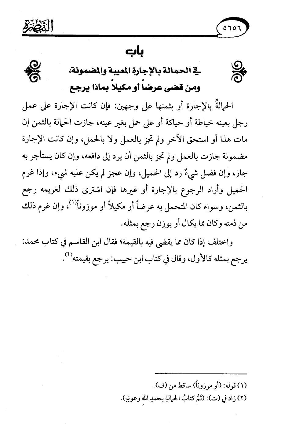 باب في الحمالة بالإجارة المعيبة والمضمونة، ومن قضى عرضًا أو مكيلًا بماذا يرجع