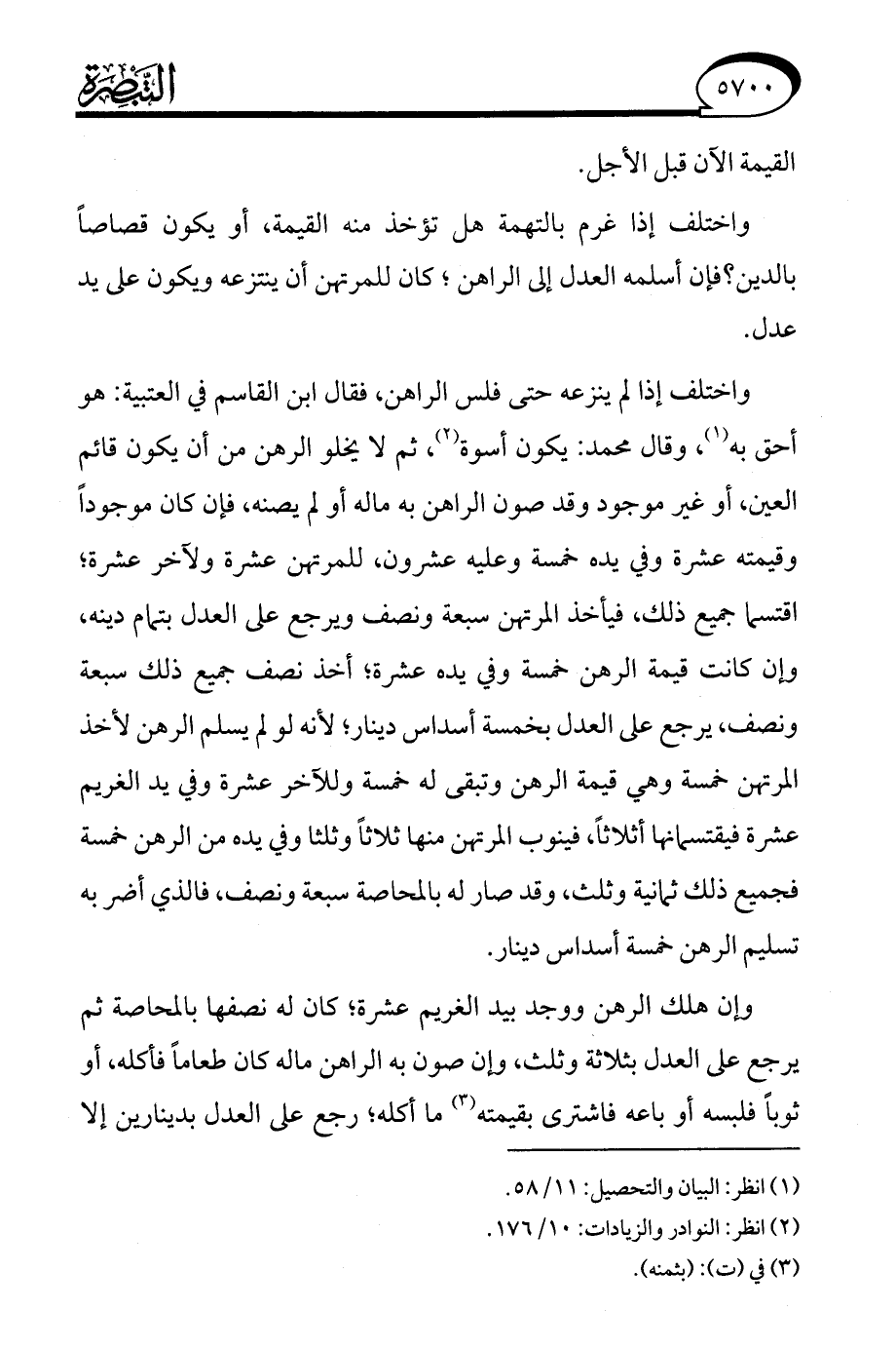 (¬2) انظر: النوادر والزيادات: 10/ 176.