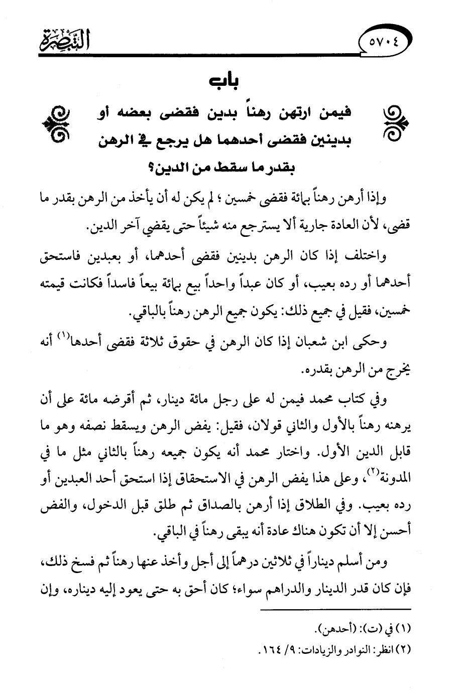 (¬2) انظر: النوادر والزيادات: 9/ 164.