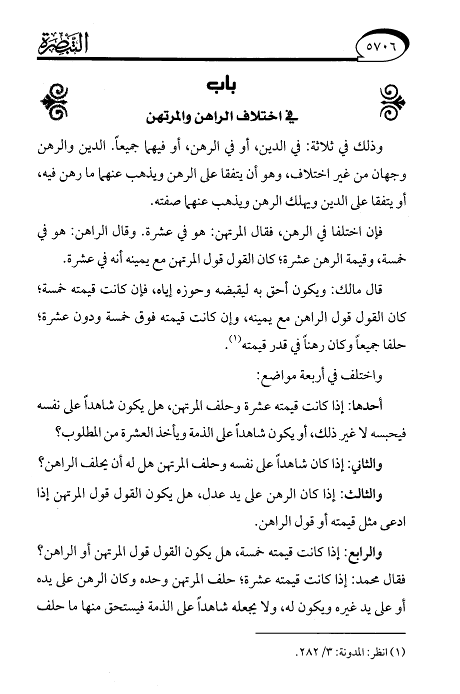(¬1) انظر: المدونة: 3/ 282.