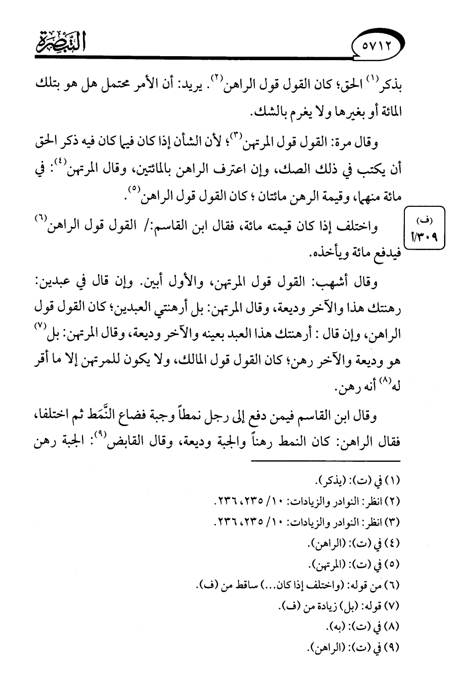 (¬3) انظر: النوادر والزيادات: 10/ 235، 236.
