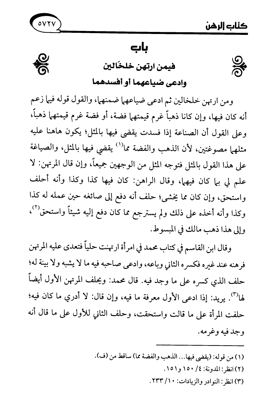 (¬3) انظر: النوادر والزيادات: 10/ 233.