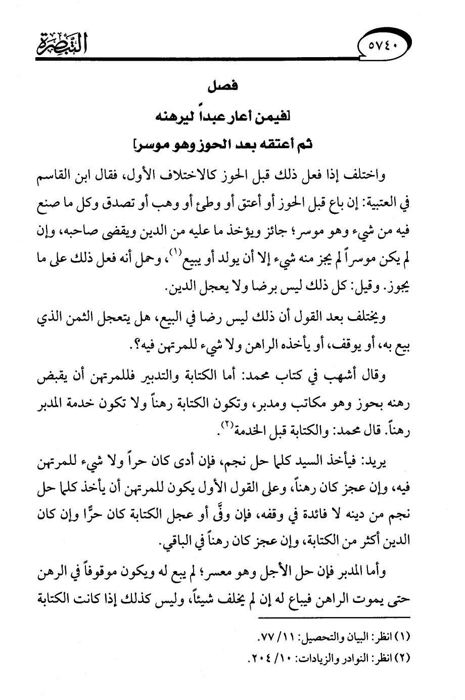 (¬2) انظر: النوادر والزيادات: 10/ 204.