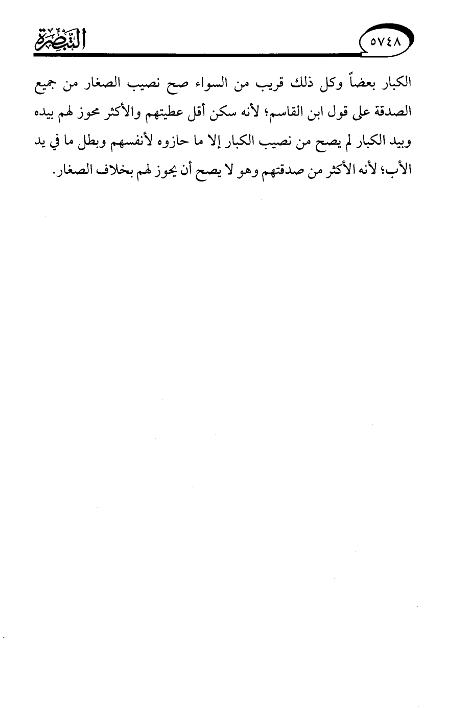 الكبار بعضًا وكل ذلك قريب من السواء صح نصيب الصغار من جميع الصدقة على قول ابن القاسم؛ لأنه سكن أقل عطيتهم والأكثر محوز لهم بيده وبيد الكبار لم يصح من نصيب الكبار إلا ما حازوه لأنفسهم وبطل ما في يد الأب؛ لأنه الأكثر من صدقتهم وهو لا يصح أن يحوز لهم بخلاف الصغار.