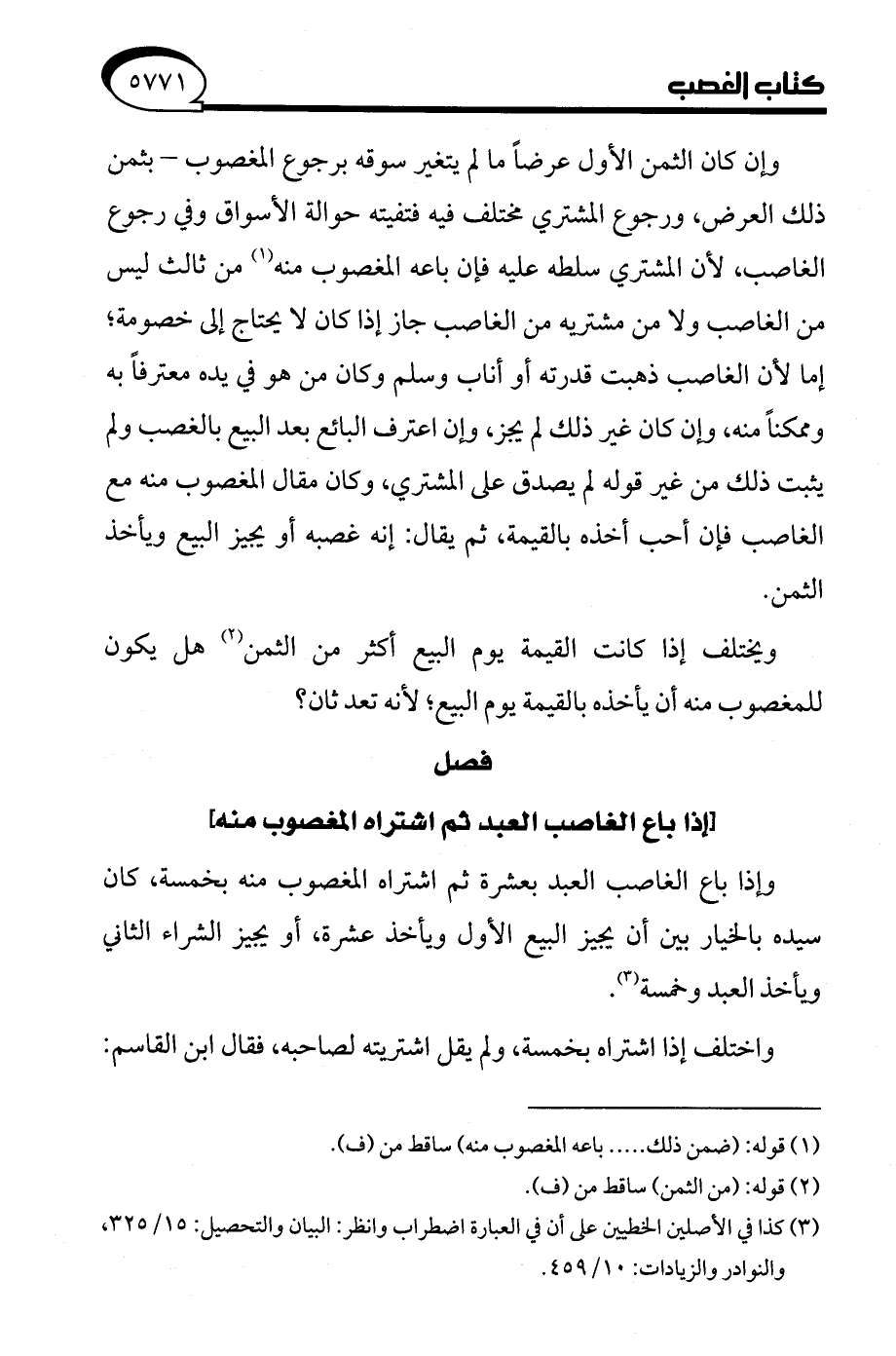 (¬3) كذا في الأصلين الخطيين على أن في العبارة اضطراب وانظر: البيان والتحصيل: 15/ 325، والنوادر والزيادات: 10/ 459.