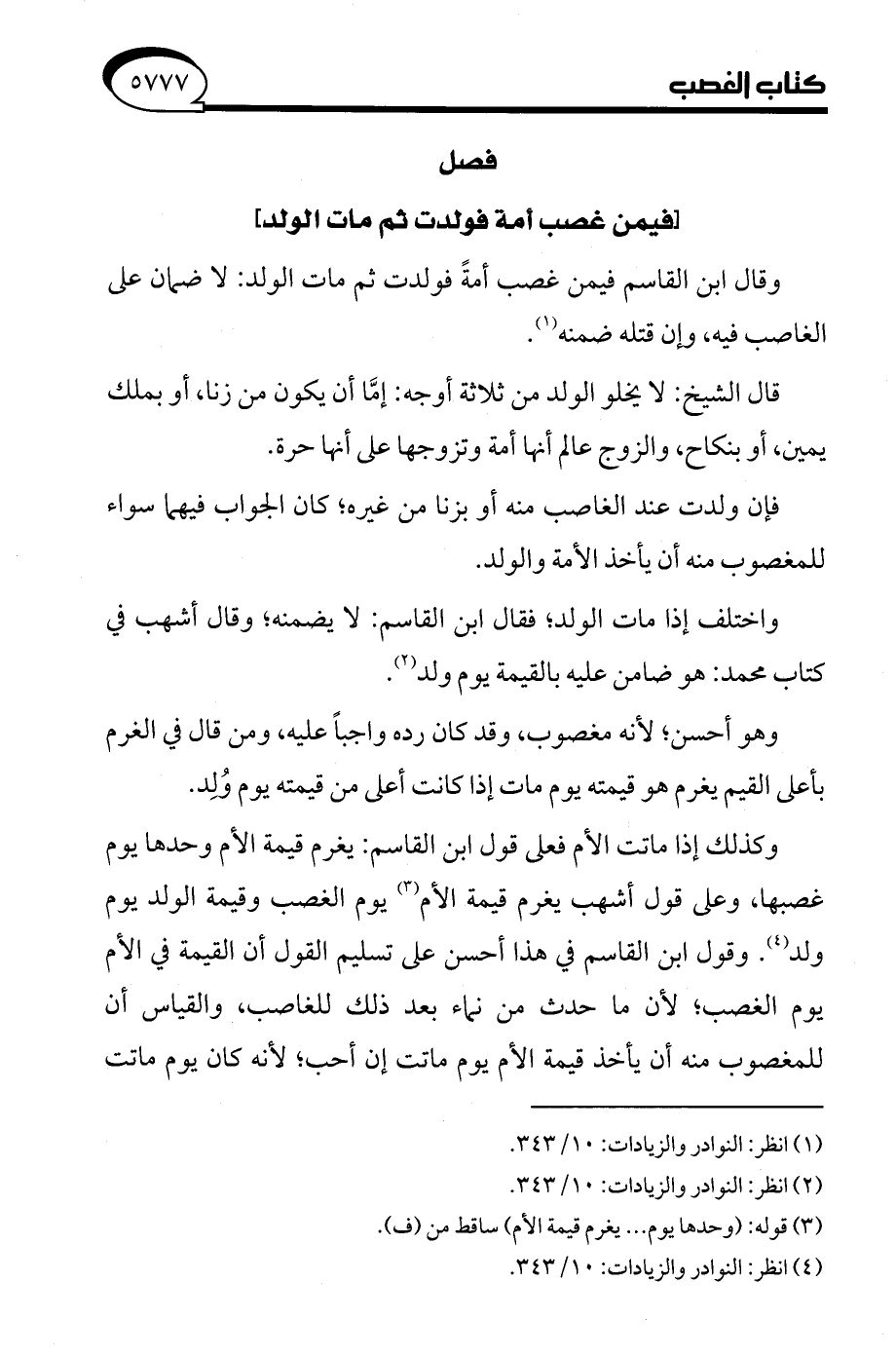 (¬4) انظر: النوادر والزيادات: 10/ 343.