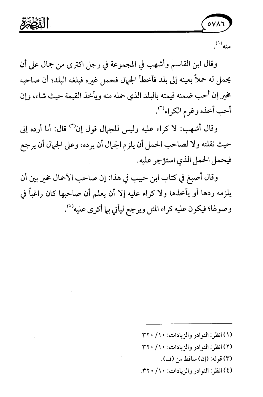 (¬4) انظر: النوادر والزيادات: 10/ 320.