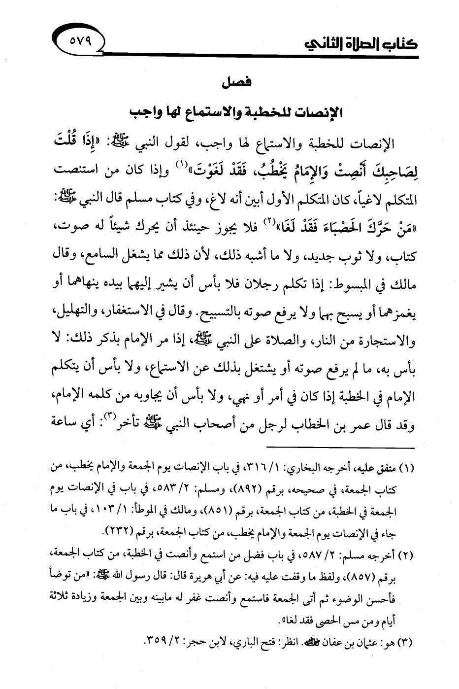 (¬1) متفق عليه, أخرجه البخاري: 1/ 316، في باب الإنصات يوم الجمعة والإمام يخطب، من كتاب الجمعة، في صحيحه, برقم (892)، ومسلم: 2/ 583، في باب في الإنصات يوم الجمعة في الخطبة، من كتاب الجمعة, برقم (851)، ومالك في الموطأ: 1/ 103، في باب ما جاء في الإنصات يوم الجمعة والإمام يخطب، من كتاب الجمعة, برقم (232).