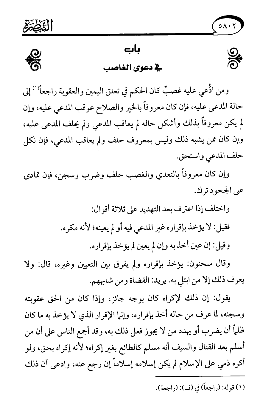 وقال سحنون: يؤخذ بإقراره ولم يفرق بين التعيين وغيره، قال: ولا يعرف ذلك إلا من ابتلي به. يريد: القضاة ومن شابههم.