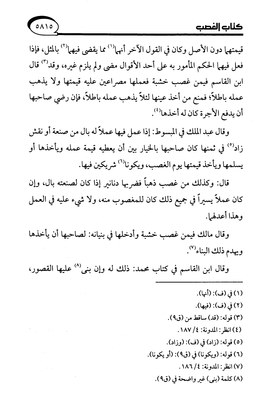 (¬7) انظر: المدونة: 4/ 186.