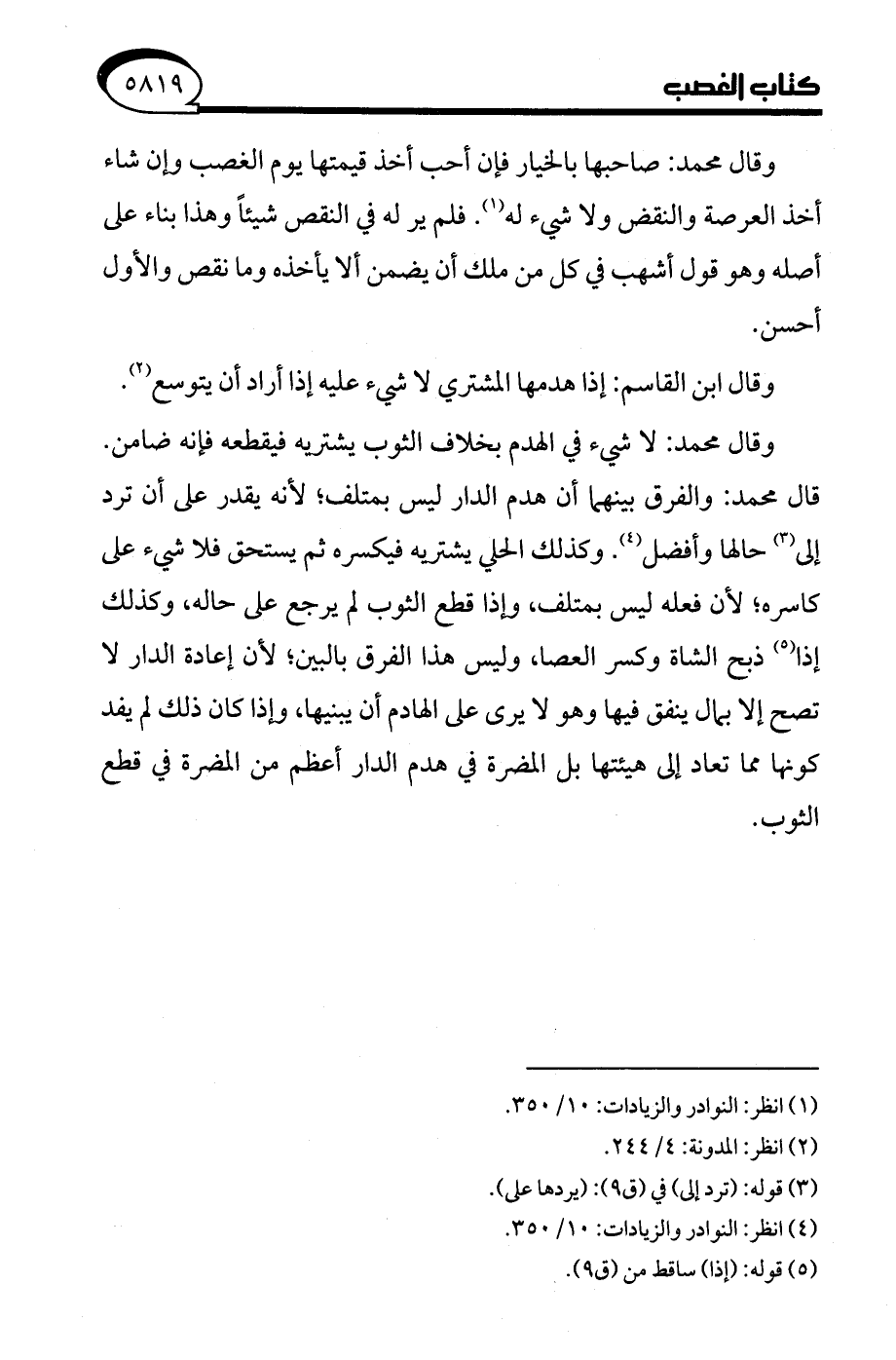 (¬1) انظر: النوادر والزيادات: 10/ 350.