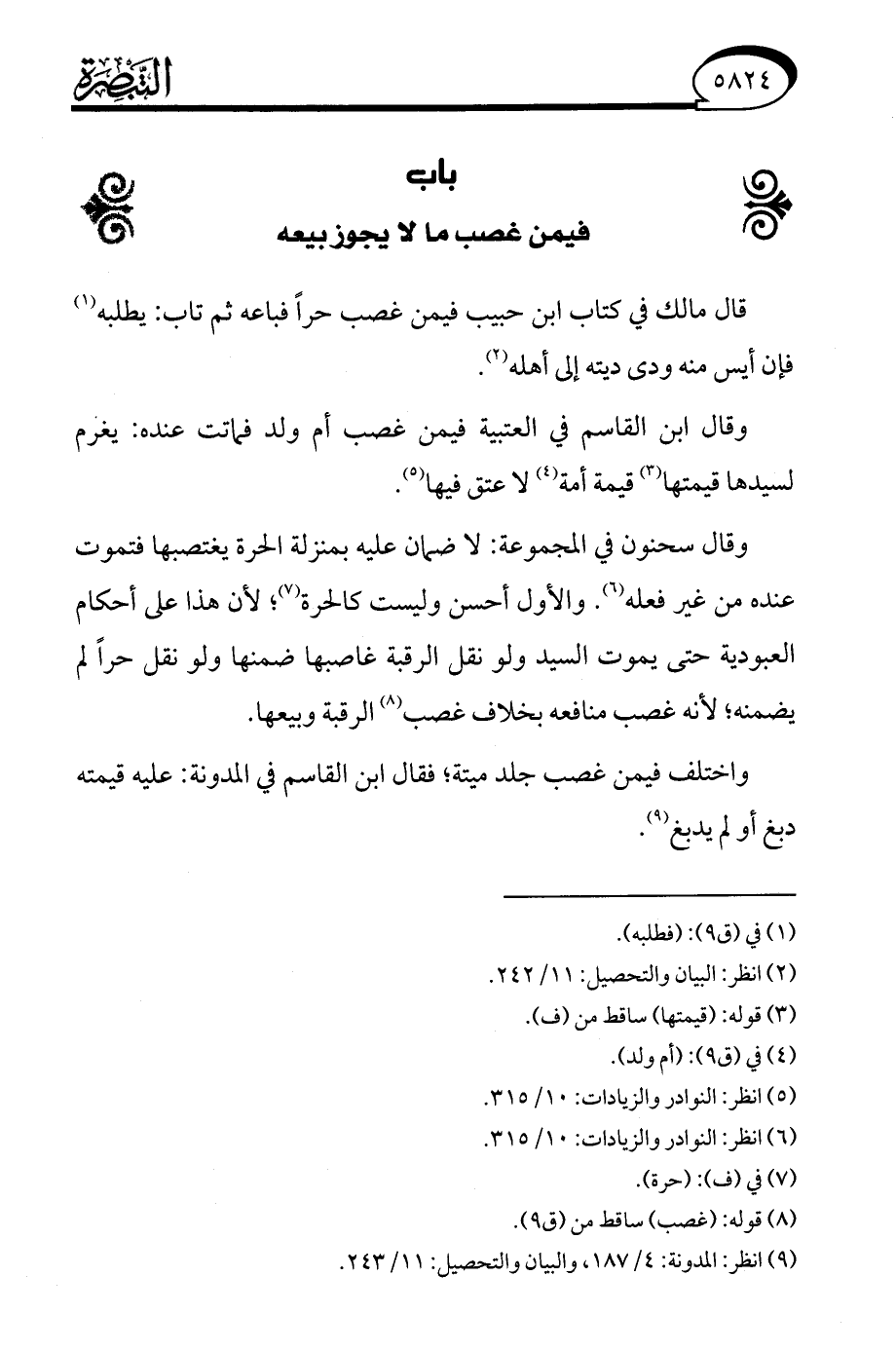 (¬9) انظر: المدونة: 4/ 187، والبيان والتحصيل: 11/ 243.