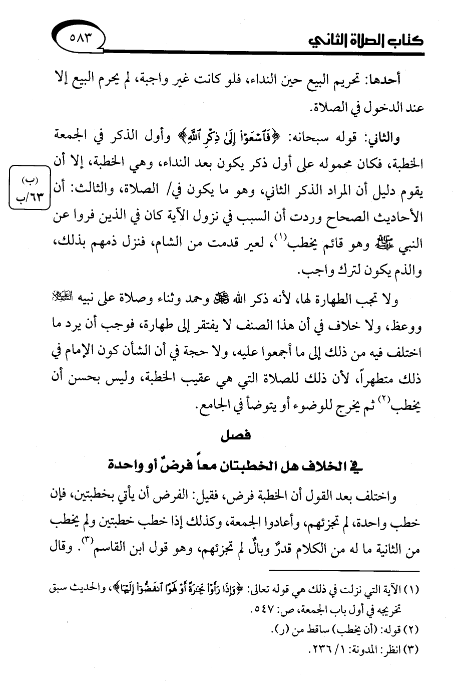 فصل في الخلاف هل الخطبتان معًا فرضٌ أو واحدة