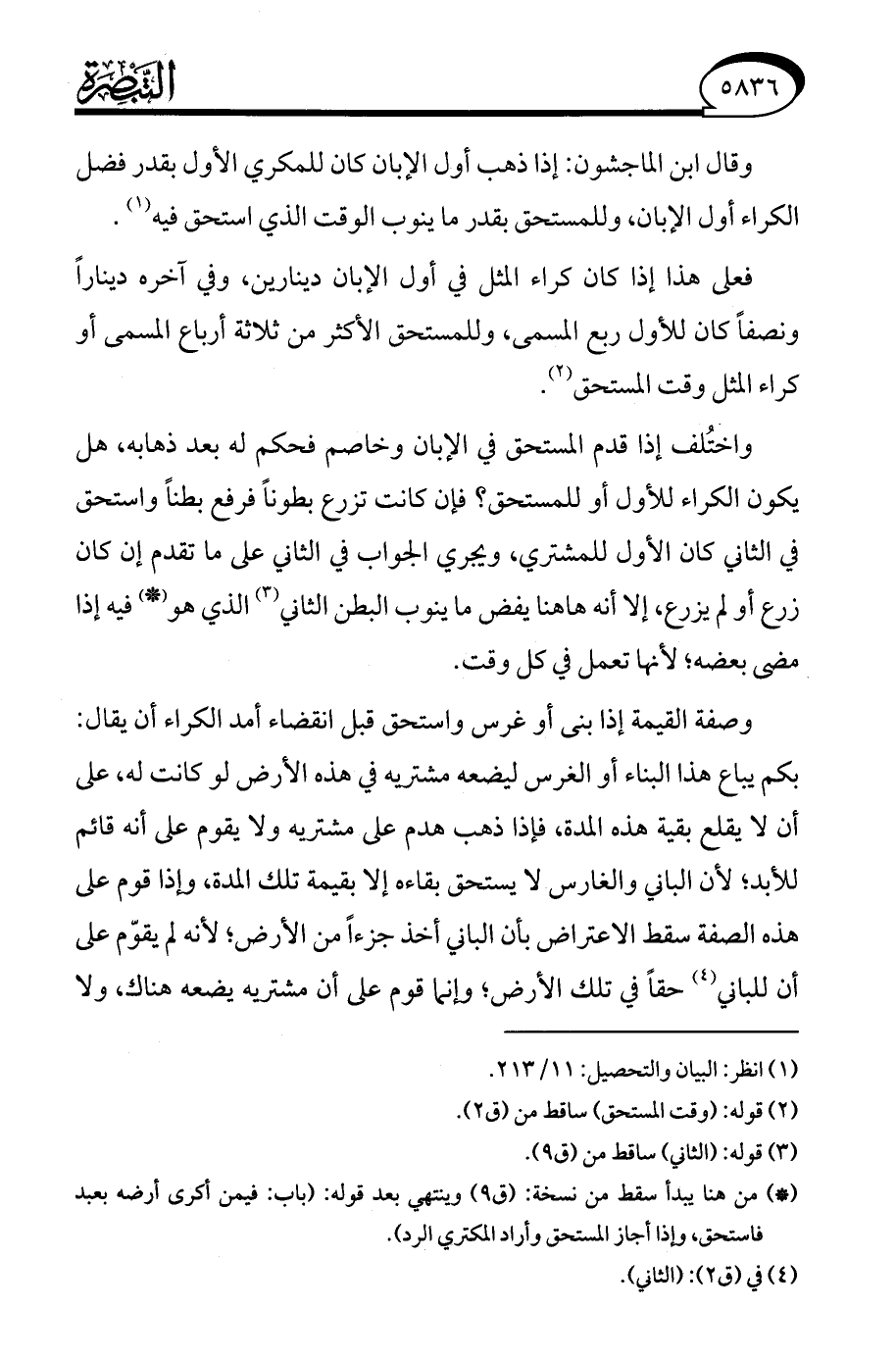 (*) من هنا يبدأ سقط من نسخة: (ق 9) وينتهي بعد قوله: (باب: فيمن أكرى أرضه بعبد فاستحق، وإذا أجاز المستحق وأراد المكتري الرد).