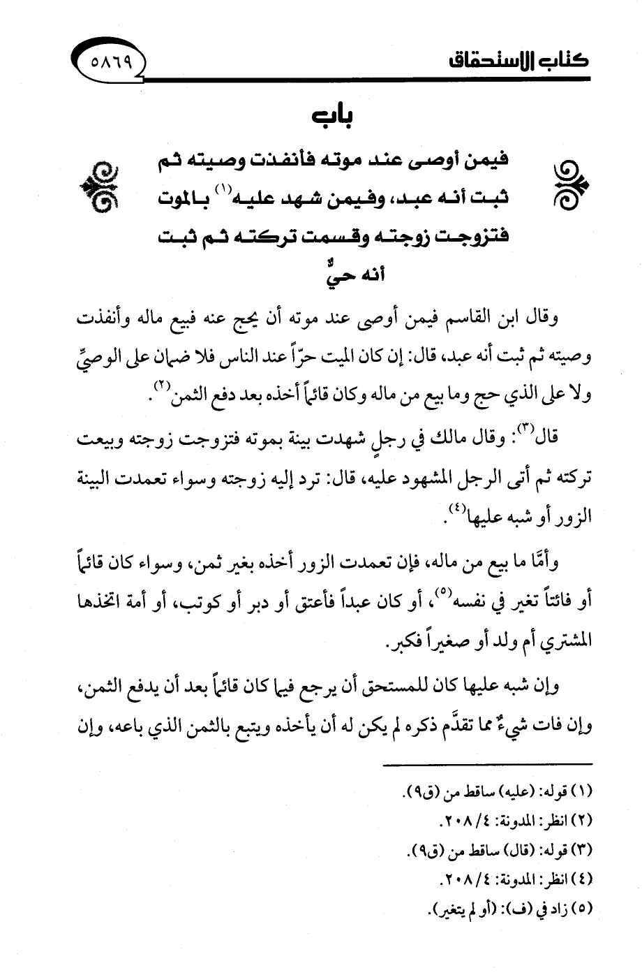 وقال ابن القاسم فيمن أوصى عند موته أن يحج عنه فبيع ماله وأنفذت وصيته ثم ثبت أنه عبد، قال: إن كان الميت حرًّا عند الناس فلا ضمان على الوصيِّ ولا على الذي حج وما بيع من ماله وكان قائمًا أخذه بعد دفع الثمن (¬2).