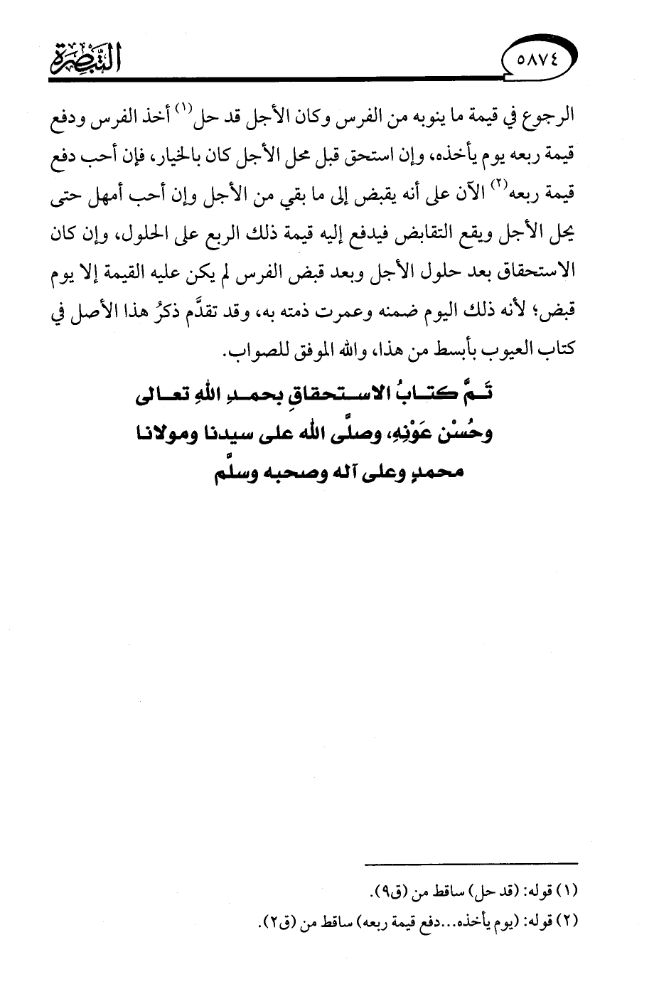 تَمَّ كتابُ الاستحقاقِ بحمدِ اللهِ تعالى