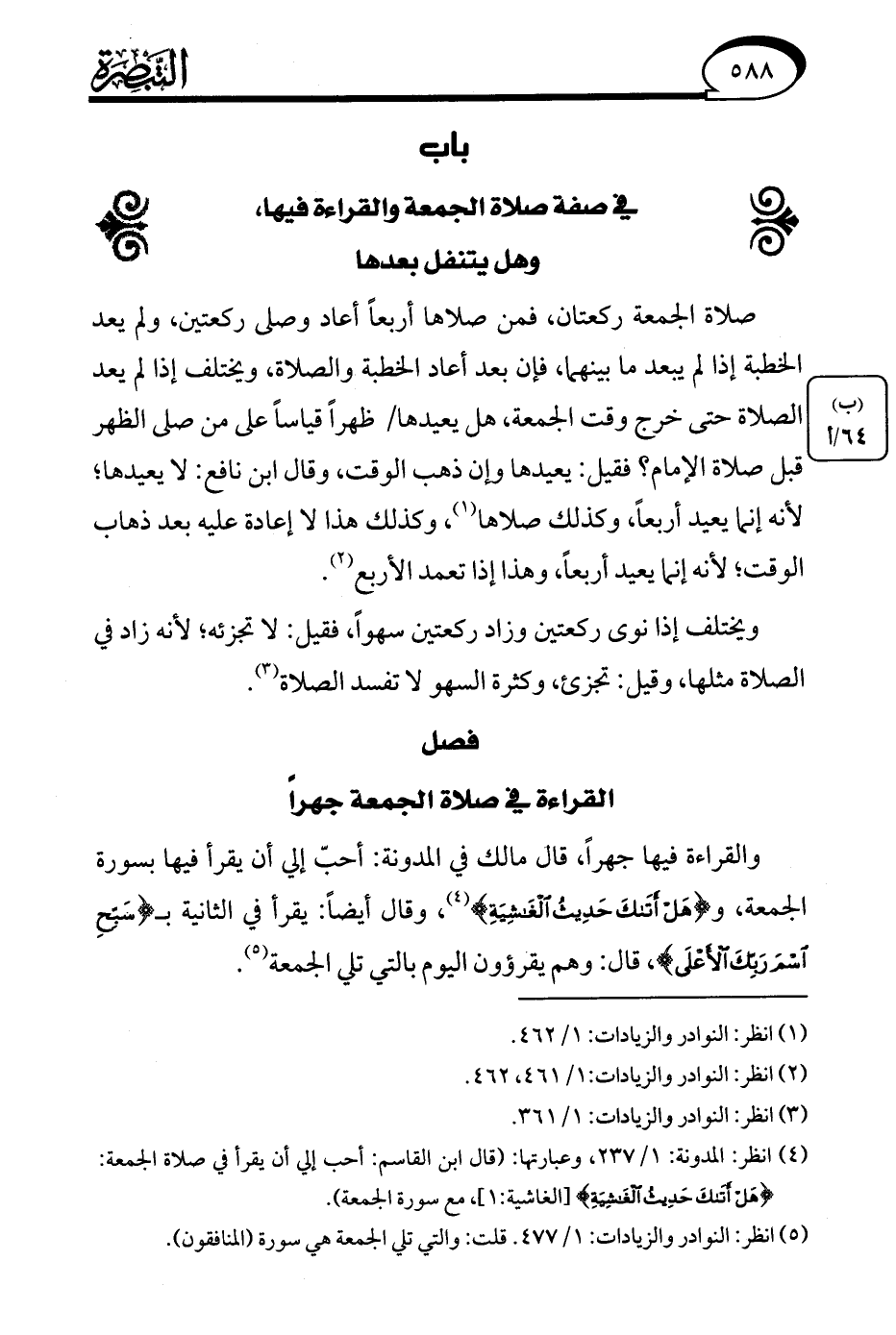 (¬5) انظر: النوادر والزيادات: 1/ 477. قلت: والتي تلي الجمعة هي سورة (المنافقون).