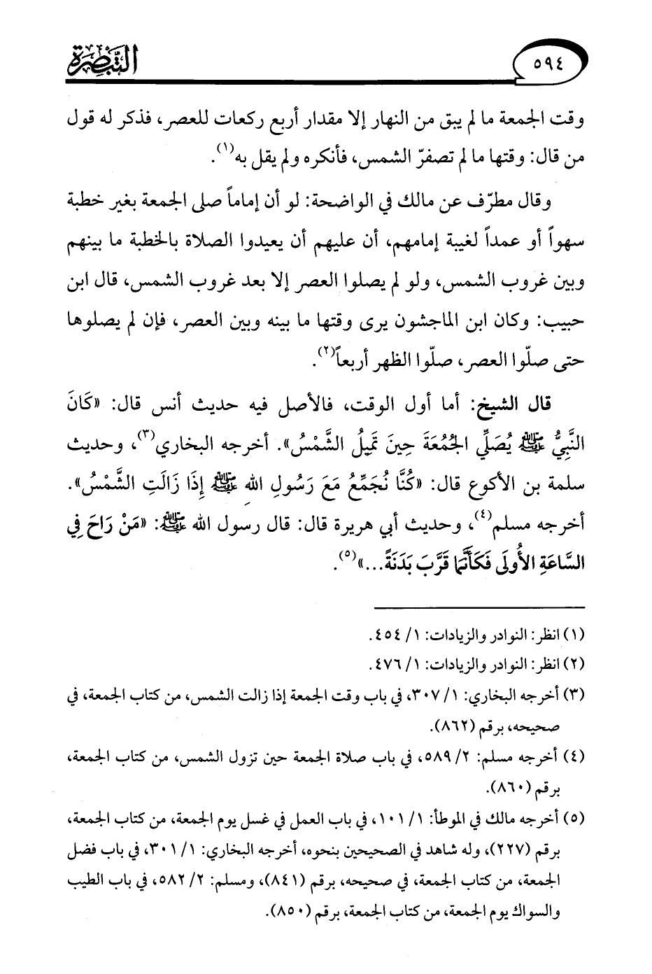 (¬4) أخرجه مسلم: 2/ 589، في باب صلاة الجمعة حين تزول الشمس، من كتاب الجمعة، برقم (860).