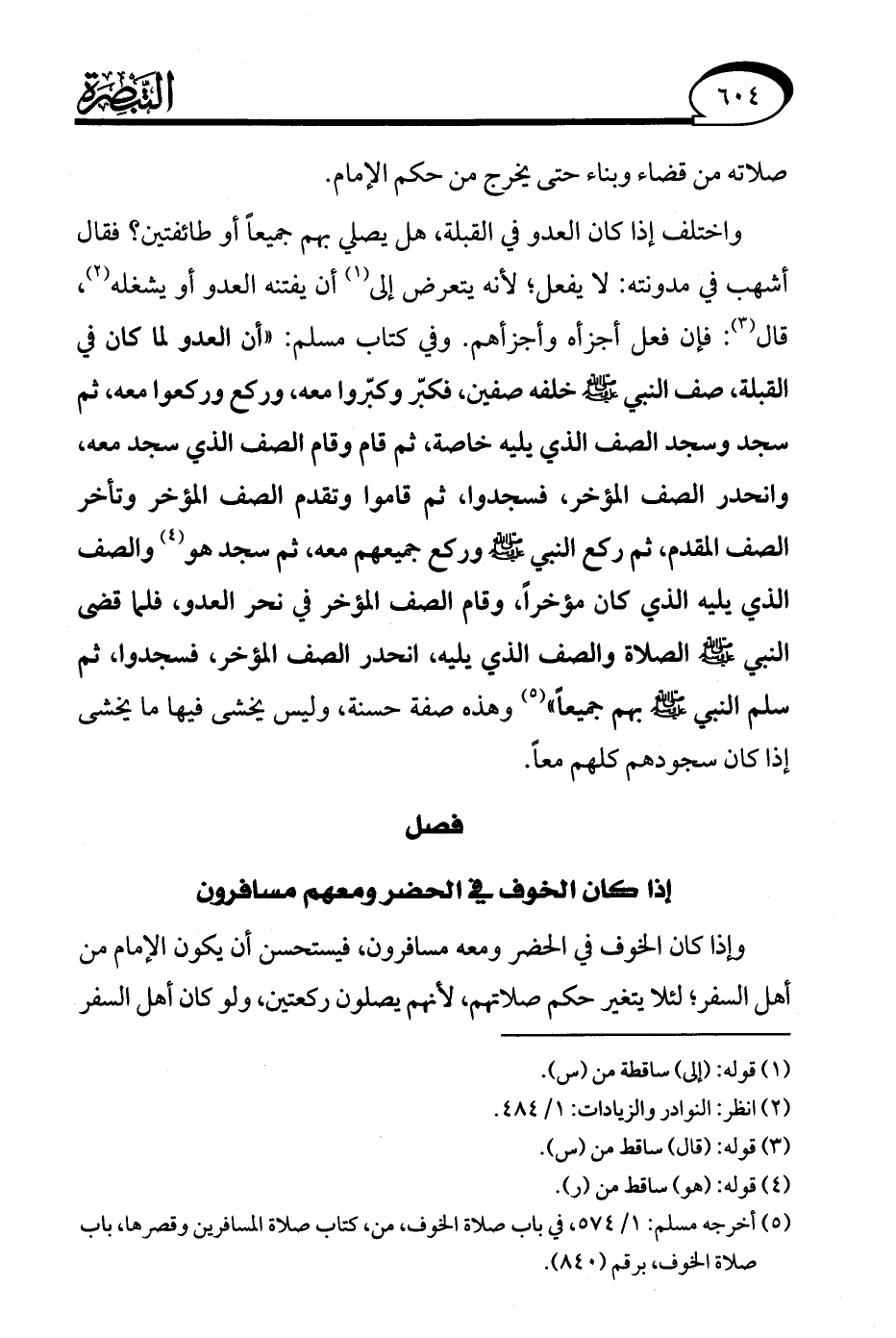 (¬5) أخرجه مسلم: 1/ 574، في باب صلاة الخوف، من، كتاب صلاة المسافرين وقصرها، باب صلاة الخوف، برقم (840).