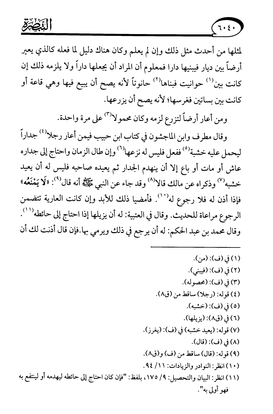 (¬10) انظر: النوادر والزيادات: 11/ 94.
