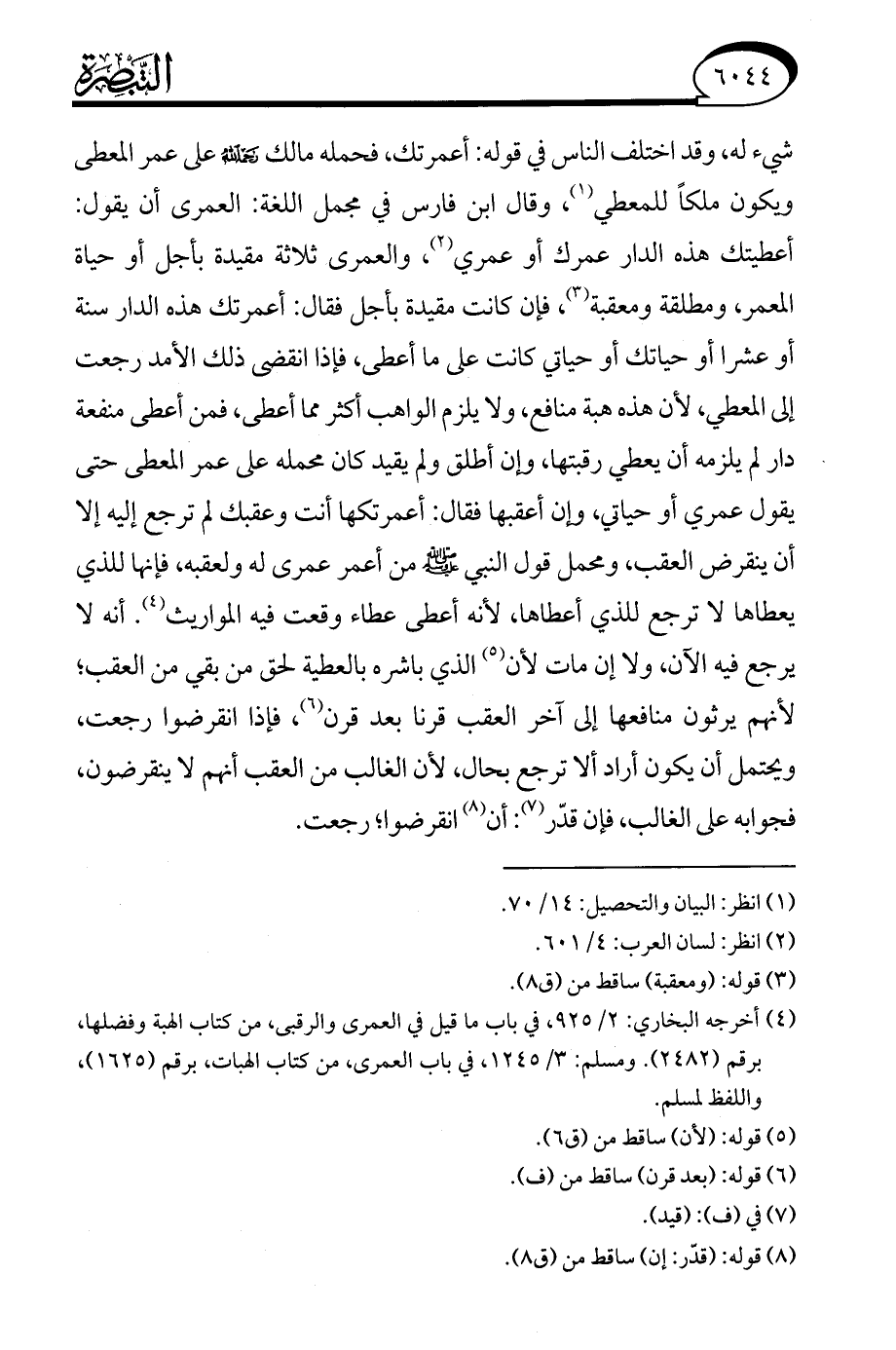 (¬4) أخرجه البخاري: 2/ 925، في باب ما قيل في العمرى والرقبى، من كتاب الهبة وفضلها، برقم (2482). ومسلم: 3/ 1245، في باب العمرى، من كتاب الهبات، برقم (1625)، واللفظ لمسلم.