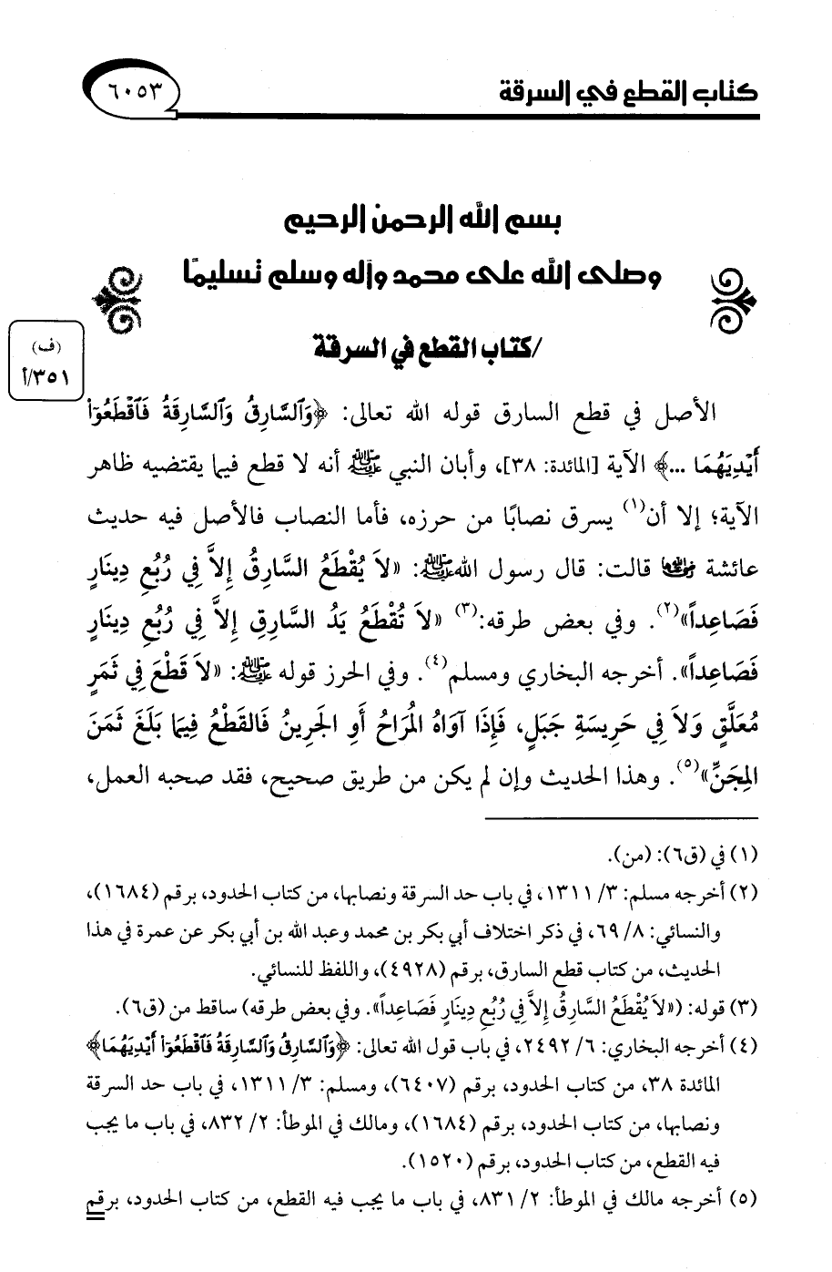 (¬5) أخرجه مالك في الموطأ: 2/ 831، في باب ما يجب فيه القطع، من كتاب الحدود، برقم =