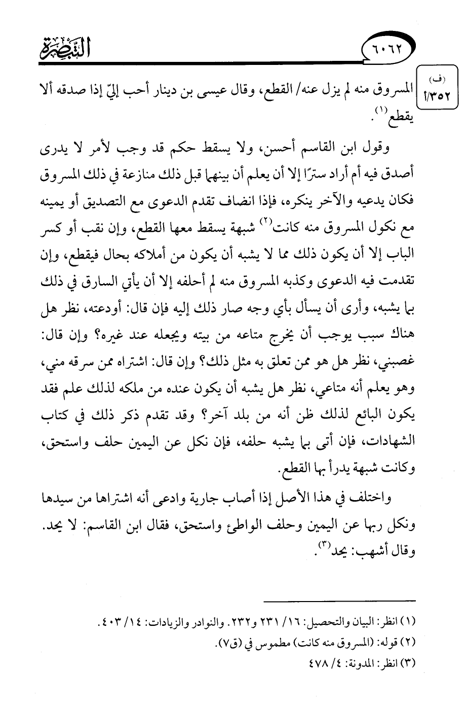 (¬1) انظر: البيان والتحصيل: 16/ 231 و 232. والنوادر والزيادات: 14/ 403.