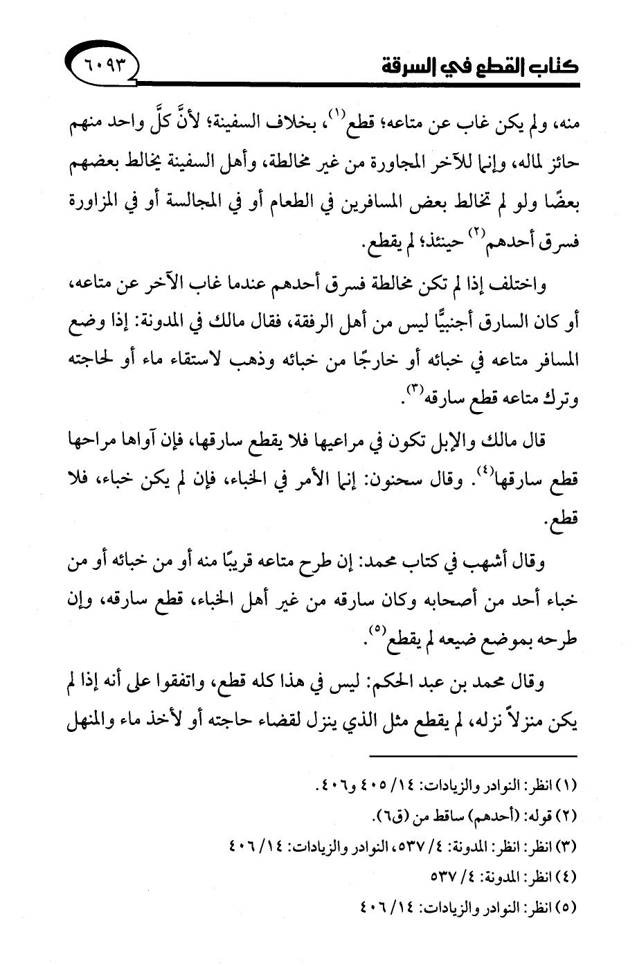 (¬5) انظر: النوادر والزيادات: 14/ 406.