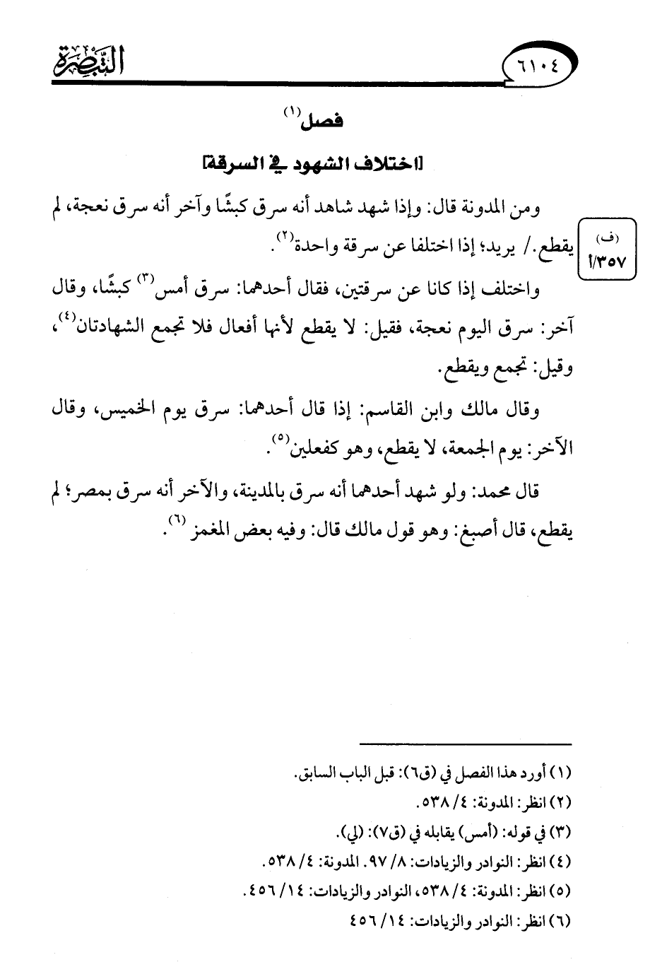 (¬6) انظر: النوادر والزيادات: 14/ 456.