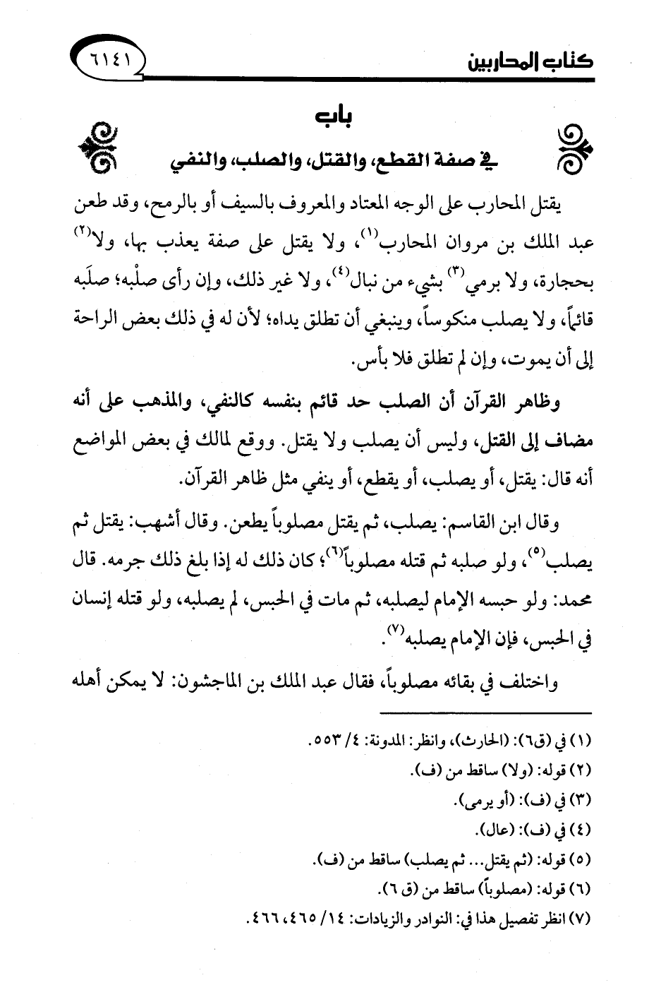 (¬7) انظر تفصيل هذا في: النوادر والزيادات: 14/ 465، 466.