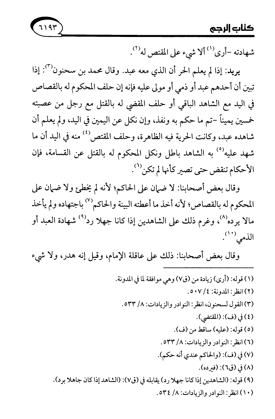 (¬6) انظر: النوادر والزيادات: 8/ 533.