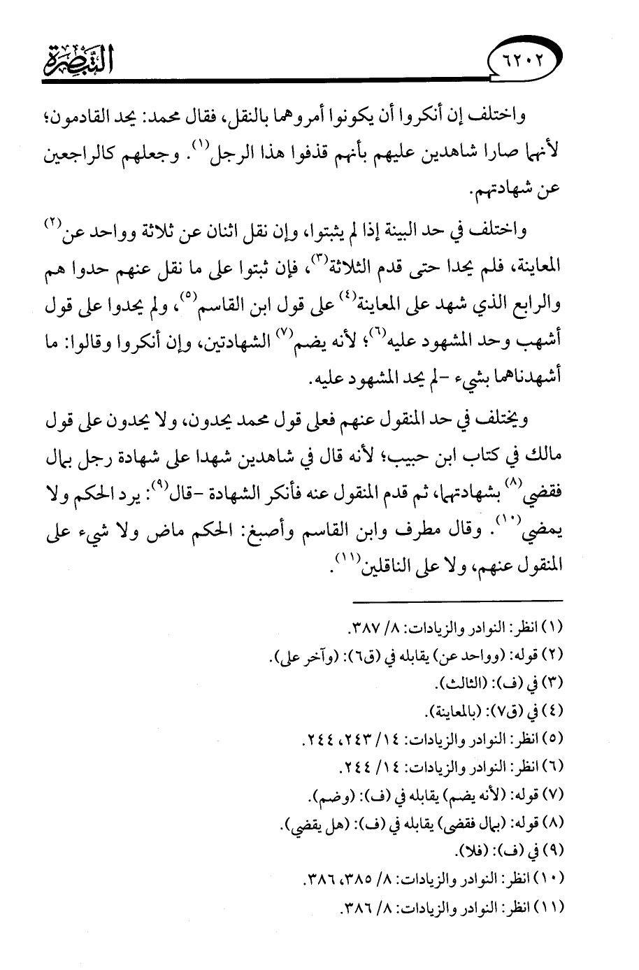 (¬11) انظر: النوادر والزيادات: 8/ 386.