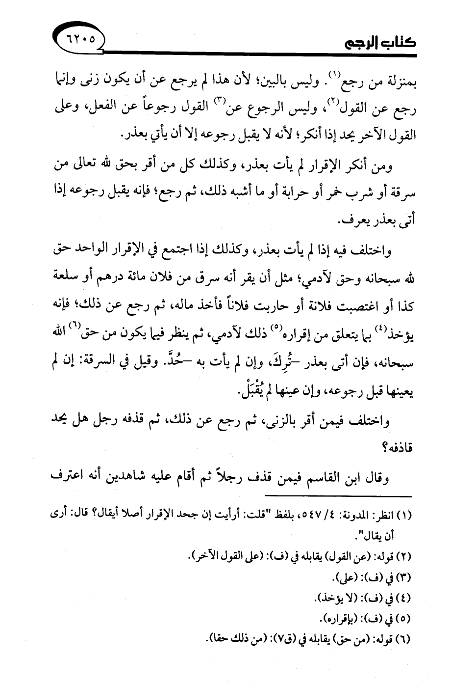 واختلف فيه إذا لم يأت بعذر، وكذلك إذا اجتمع في الإقرار الواحد حق لله سبحانه وحق لآدمي، مثل أن يقر أنه سرق من فلان مائة درهم أو سلعة كذا أو اغتصبت فلانة أو حاربت فلانًا فأخذ ماله، ثم رجع عن ذلك، فإنه يؤخذ (¬4) بما يتعلق من إقراره (¬5) ذلك لآدمي، ثم ينظر فيما يكون من حق (¬6) الله سبحانه، فإن أتى بعذر -تُرِكَ، وإن لم يأت به- حُدَّ. وقيل في السرقة: إن لم يعينها قبل رجوعه، وإن عينها لم يُقْبَلْ.