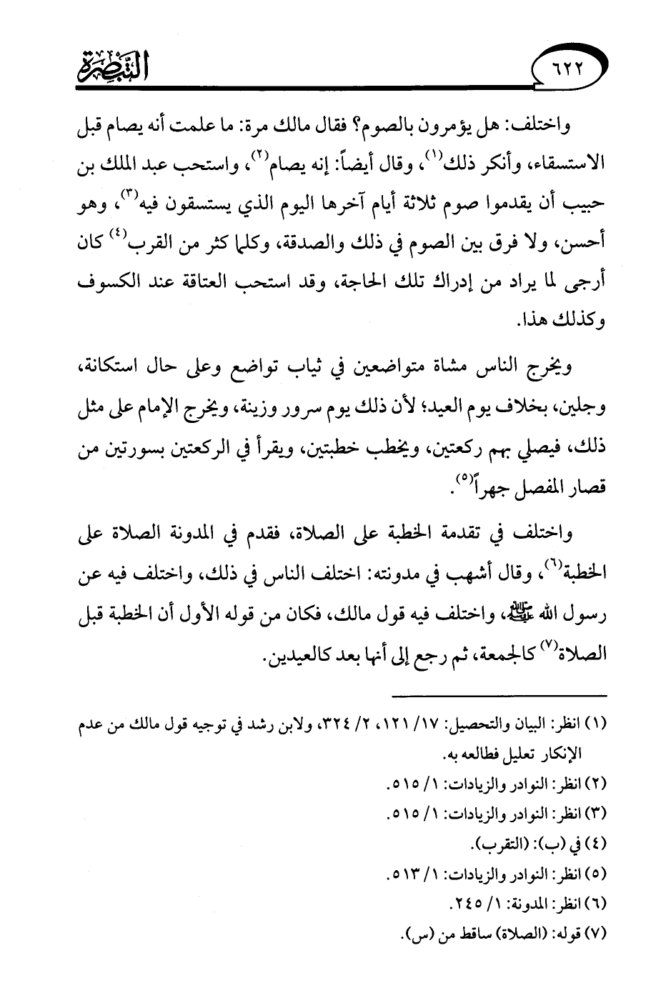 (¬1) انظر: البيان والتحصيل: 17/ 121، 2/ 324، ولابن رشد في توجيه قول مالك من عدم الإنكار تعليل فطالعه به.