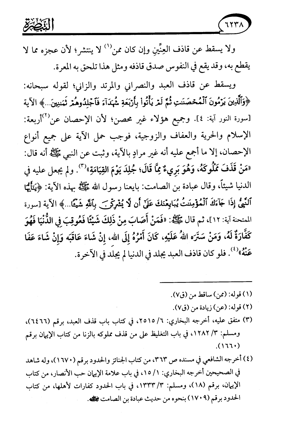 (¬3) متفق عليه، أخرجه البخاري: 6/ 2515، في كتاب باب قذف العبد، برقم (6466)، ومسلم: 3/ 1282، في باب التغليظ على من قذف مملوكه بالزنا من كتاب الإيمان برقم (1660).