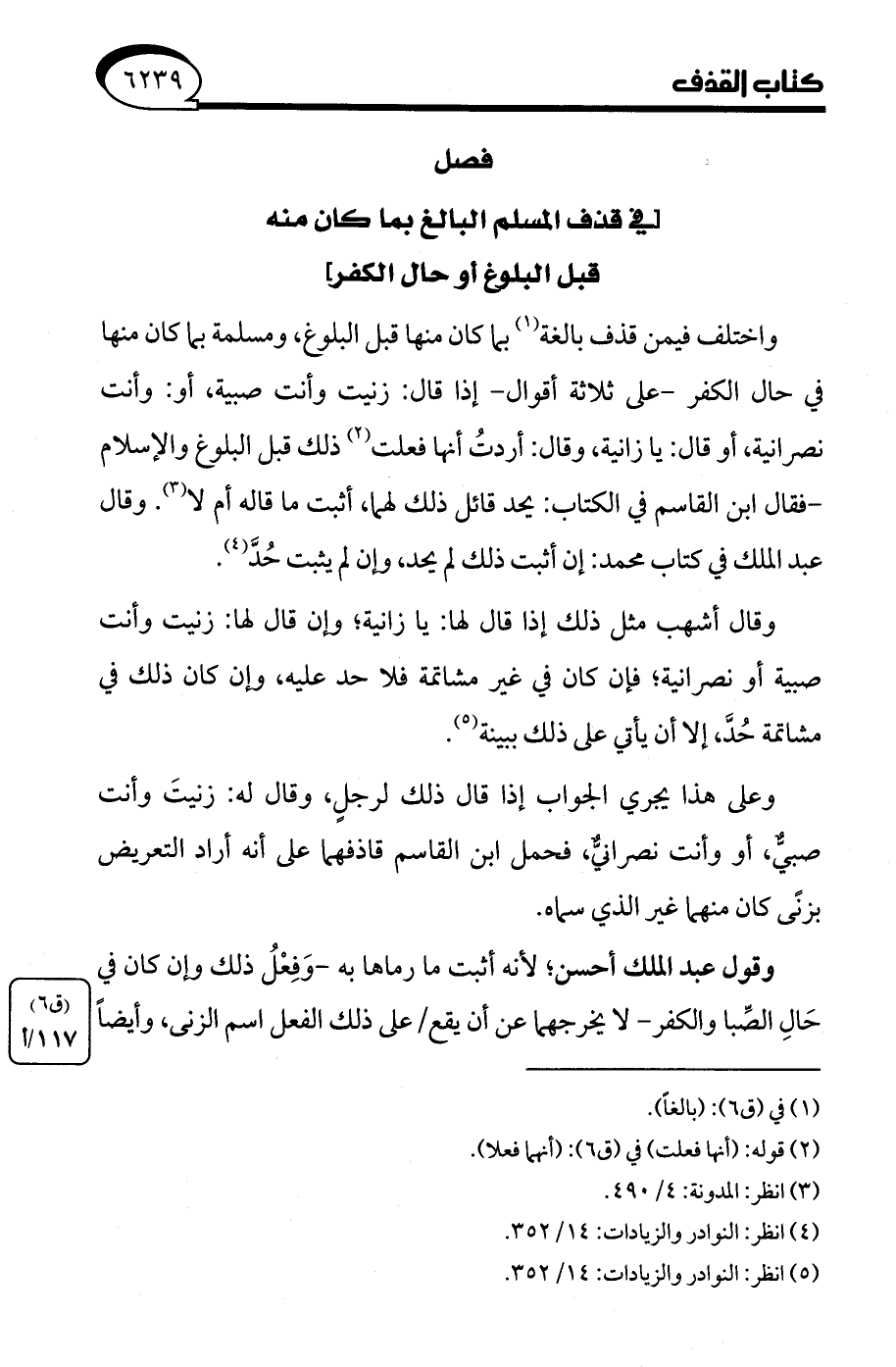 (¬5) انظر: النوادر والزيادات: 14/ 352.