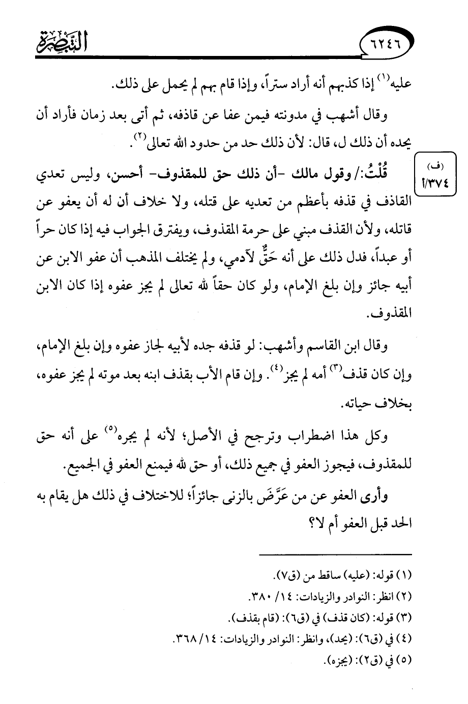 (¬2) انظر: النوادر والزيادات: 14/ 380.