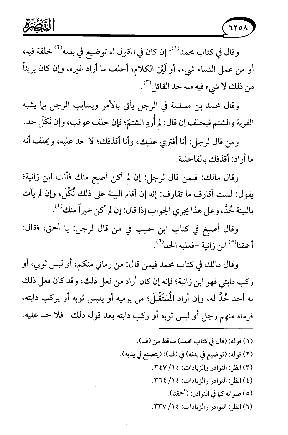 (¬6) انظر: النوادر والزيادات: 14/ 337.
