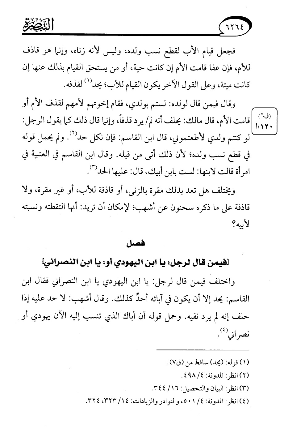 (¬4) انظر: المدونة: 4/ 501، والنوادر والزيادات: 14/ 323، 324.
