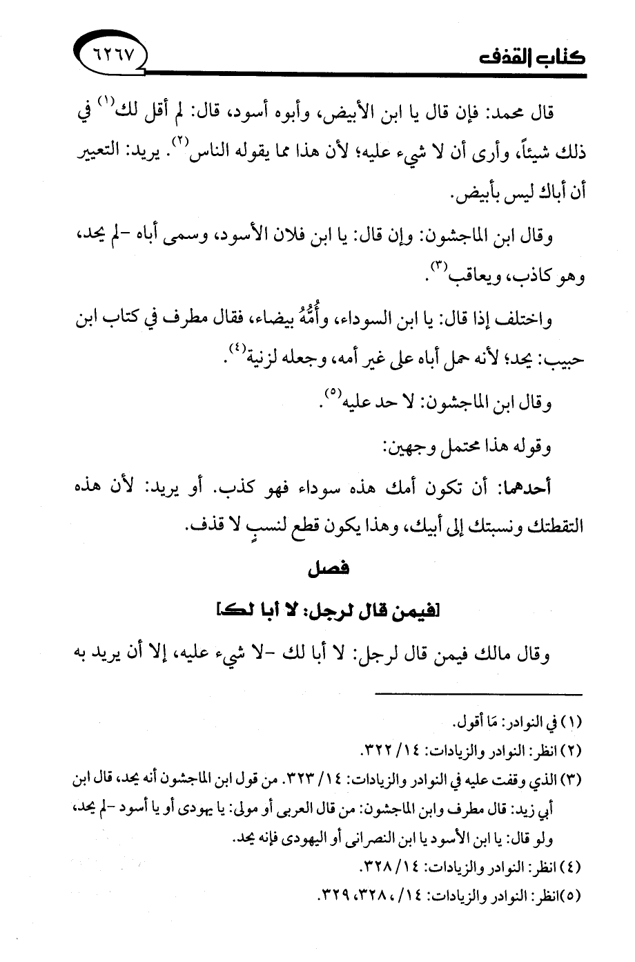 (¬5) انظر: النوادر والزيادات: 14/ 328، 329.