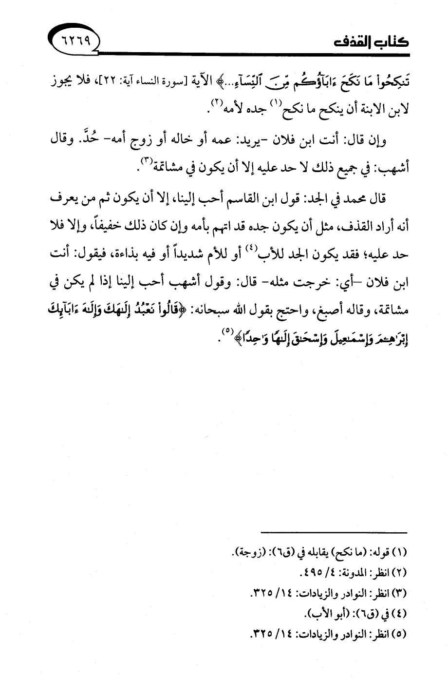 (¬5) انظر: النوادر والزيادات: 14/ 325.